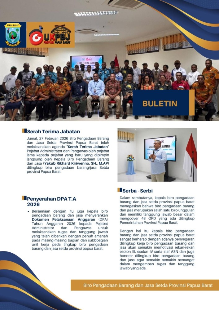 BULETIN KEGIATAN SERAH TERIMA JABATAN DAN PENYERAHAN DPA TAHUN ANGGRAN 2026 LINGKUP BIRO PENGADAAN BARANG DAN JASA SETDA PROVINSI PAPUA BARAT